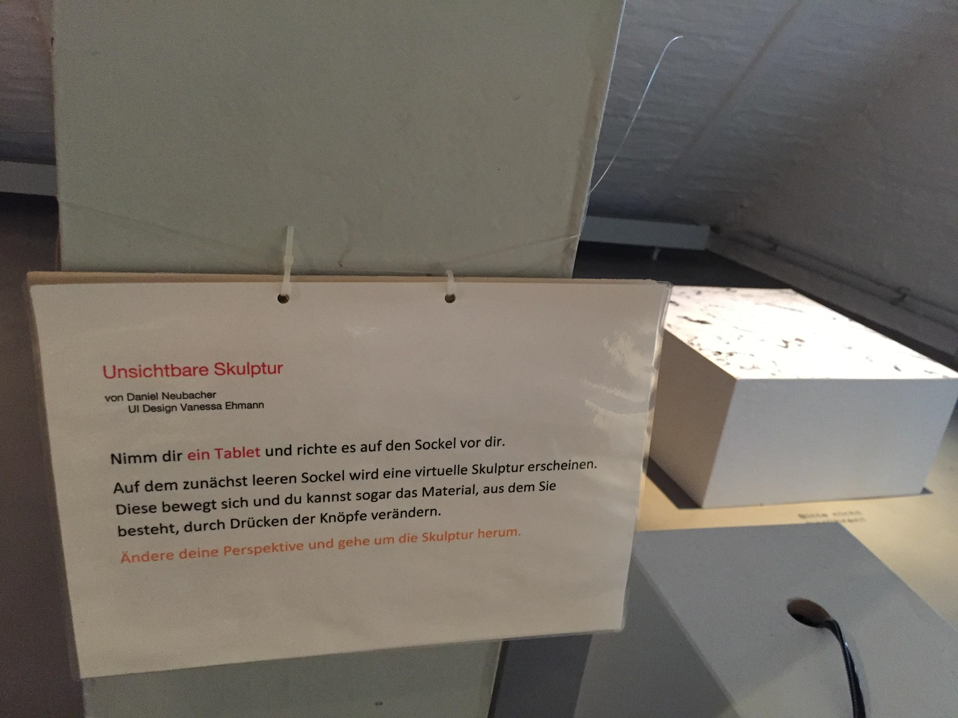 The Weserburg is a museum known for its contemporary and modern art exhibitions in Bremen. This time they were experimenting with new ways to show off art. The experimental area was dedicated to a younger target group and featured an Augmented Reality object.